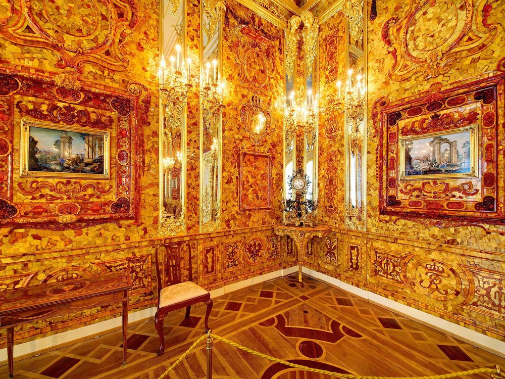 Главная локация экскурсии – Екатерининский дворец. Его строили как парадную императорскую резиденцию, без оглядки на скромность. Именно здесь находится Янтарная комната — полностью восстановленный интерьер, который считается одной из самых известных достопримечательностей не только Петербурга, но и всей России.